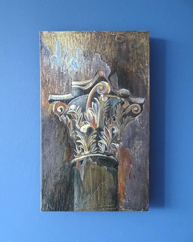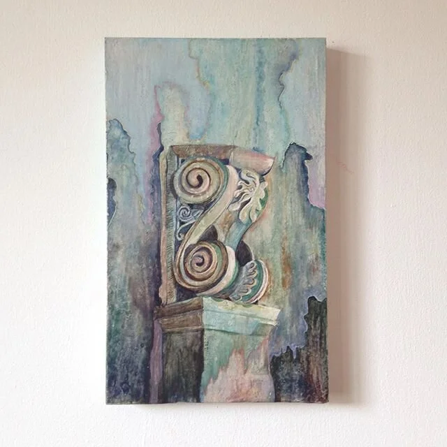 Martha Kelsey graduated with a Creative Arts degree from Bath Spa University in 2016. She works across two-dimensional media, mostly in paint and print, and has collaborated with a number of regional organisations. These have included Voices Gloucester, Meadow Arts and the Shakespeare Birthplace Trust. Each commissioned her to respond to historical sites for new audiences. She continues to develop her work, which invariably dwells on the transience of the human experience, as revealed through the study of relics, ruins and the historical record.